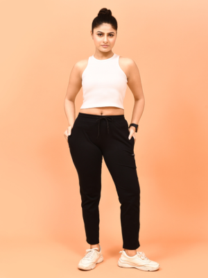Aphro Women Cotton Loopknit Joggers | Ankle Length | Mid Rise | Regular Fit | Elastic Waist with Drawstring | Side Pockets | Casual & Lounge Wear
