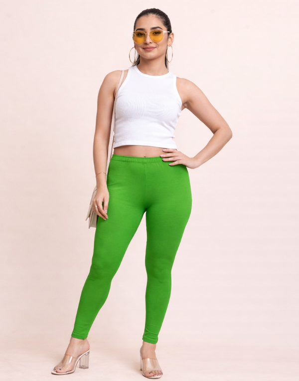 Aphro Soft Cotton Stretch Ankle Length Leggings for Women | Breathable | Mid-Rise | Slim Fit | Elasticated Waist | Daily Wear & Ethnic Wear